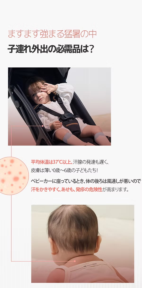 猛暑でも赤ちゃんを快適に、家族のお出かけを支える、次世代スマートクーリングマット「エアモン」が新しくなって涼しさと安心お届けします。
