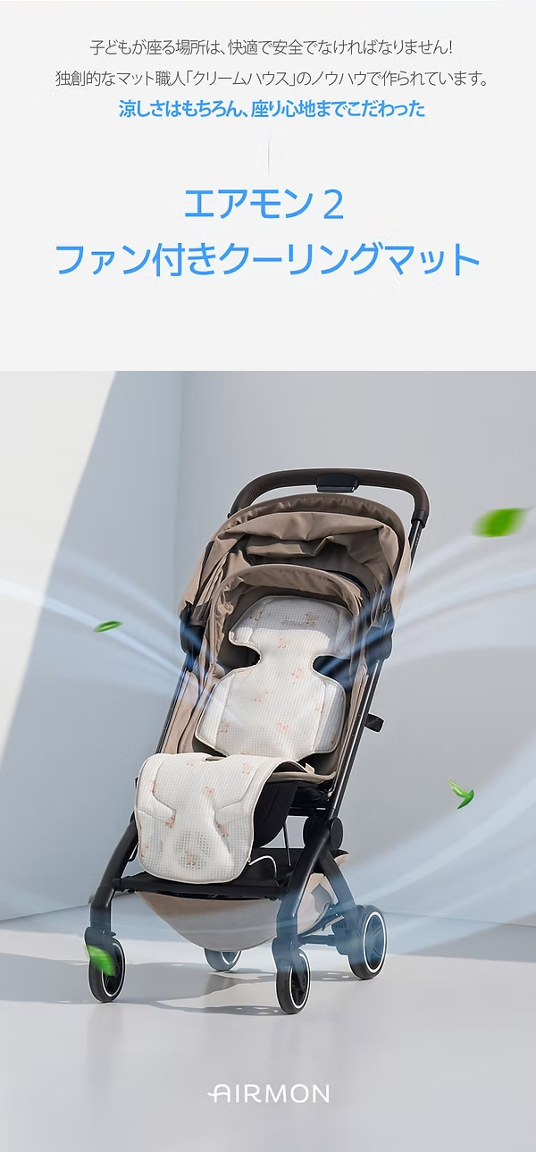 AIRMON エアモン ベビーカー クールシート ファン付き 保冷 送風式 シート クーリングマット チャイルドシート 赤ちゃん 子供 暑さ対策 冷却 扇風機 スマホ操作 お出かけ 旅行 外出 クリームハウス
