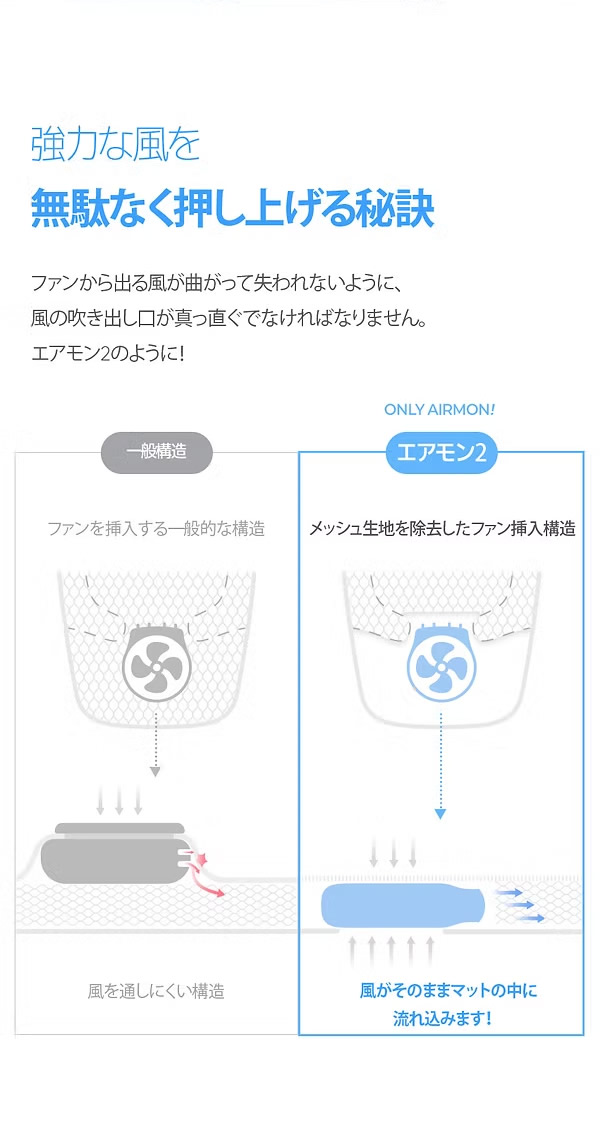 真夏の暑さにも対応できる、パワフルな送風力。