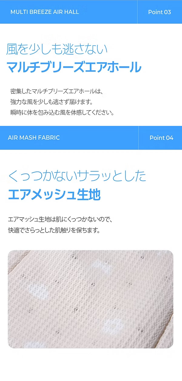 ファンは取り外しOK!まるごと洗える清潔仕様で汗や汚れが気になる夏でも、いつも清潔をキープ。