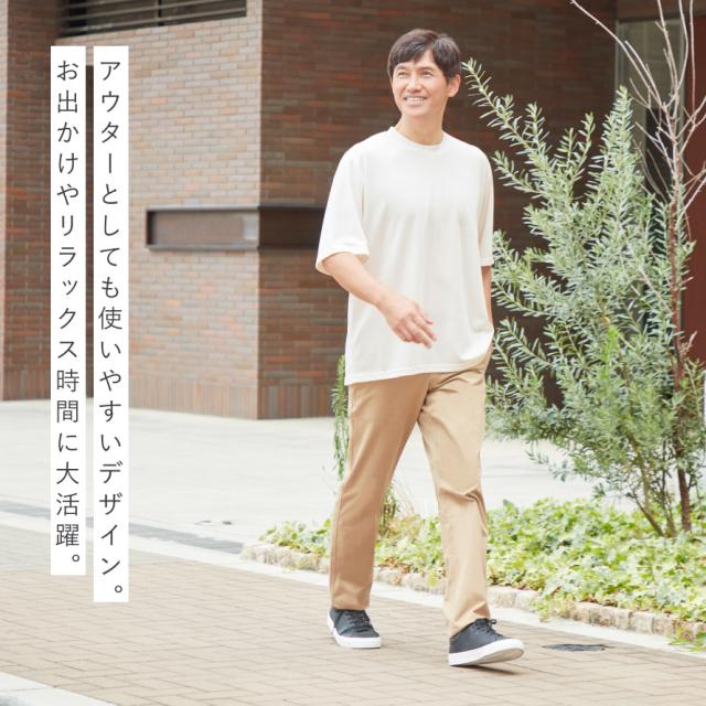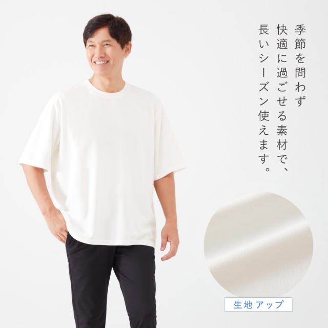 暑い季節にも重宝する半袖タイプで、快適に着用いただけます。ゆったりとした大きめシルエットで、締めつけ感の少ない楽な着心地に仕上げました。