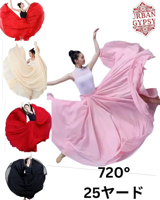 #シフォンスカート #二重スカート #スタイリッシュスカート #ベリーダンス #ジプシースカート #フラメンコスカート #社交ダンス #ロングスカート #720度スカート #25ヤードスカート #多色展開 #ダンス衣装