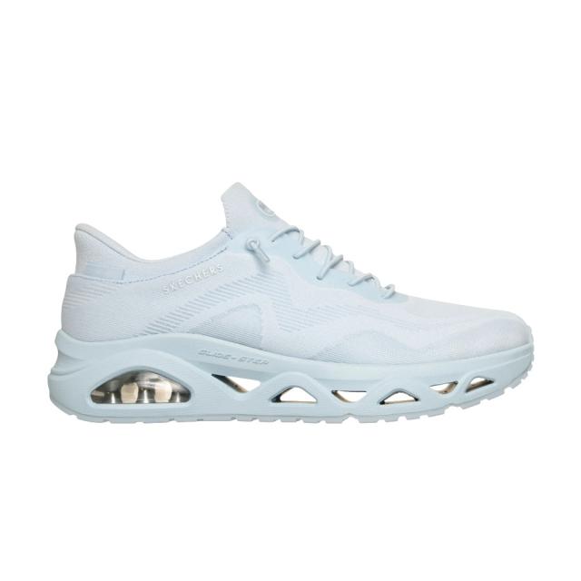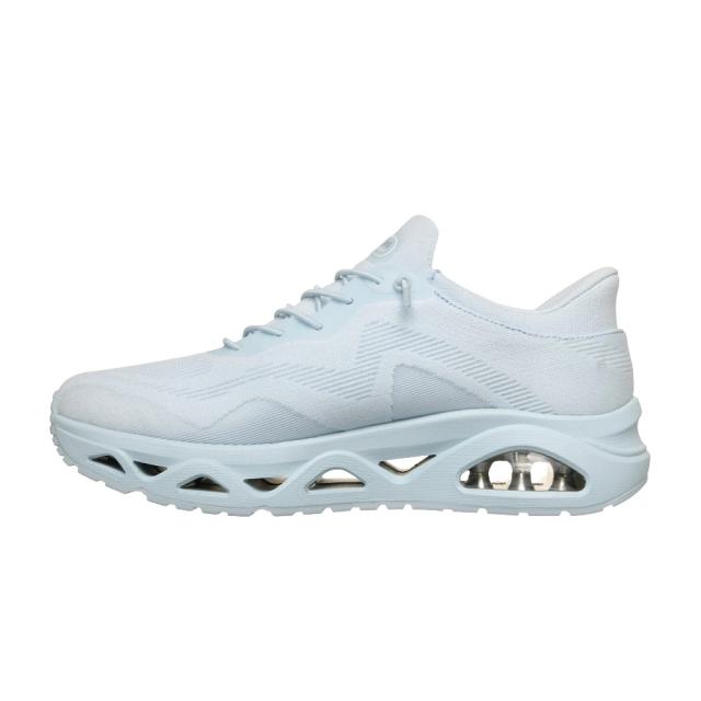 固定式ストレッチレースを配したメッシュのアッパー、クッション性のあるGlide-Step?(グライドステップ)ジオメトリックミッドソール、Skechers Air-Cooled Memory Foam?(スケッチャーズ エアクールドメモリーフォーム)インソール、ビジブル構造のSkech-Air?(スケッチエア)エアバッグミッドソールが特長です。