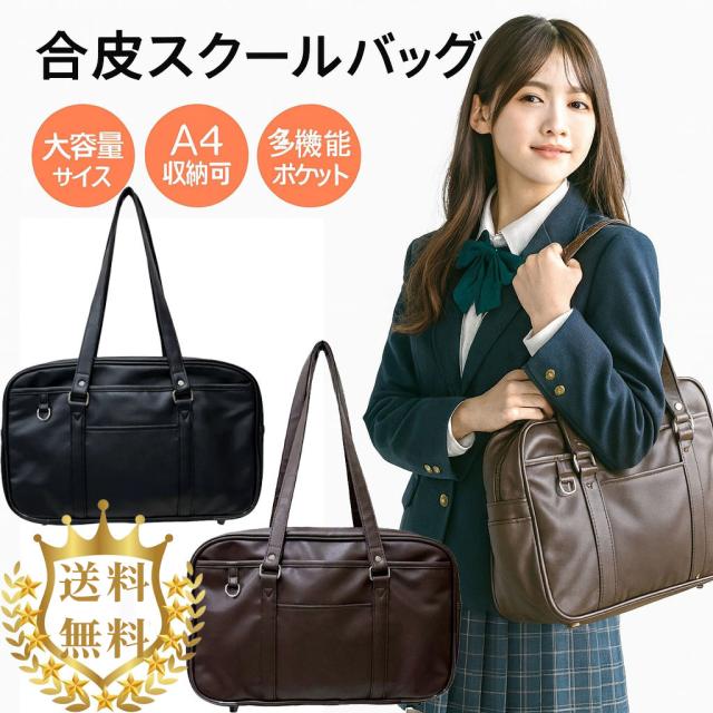 合成皮革 スクールバッグ A4対応 大容量 男女兼用