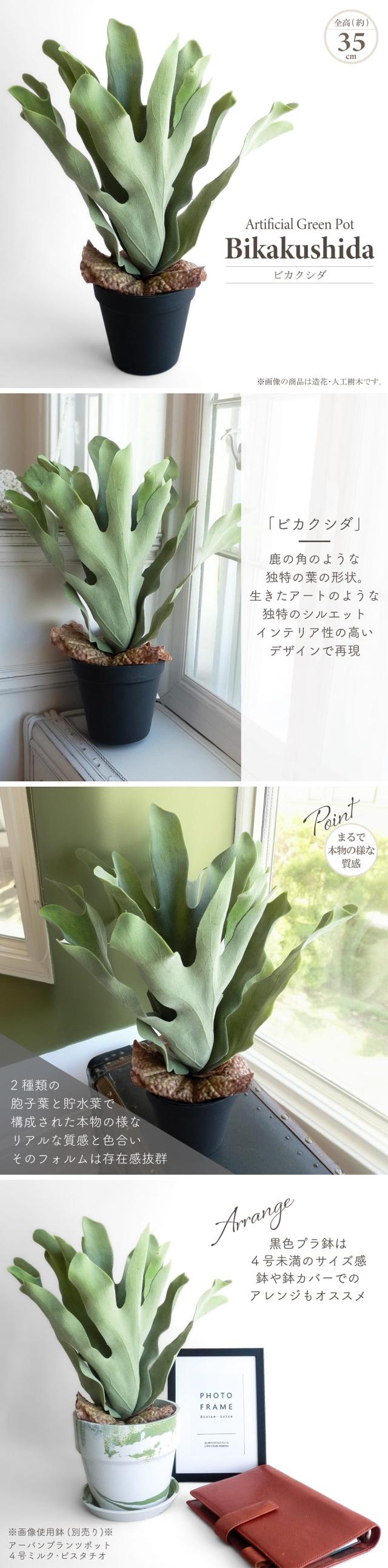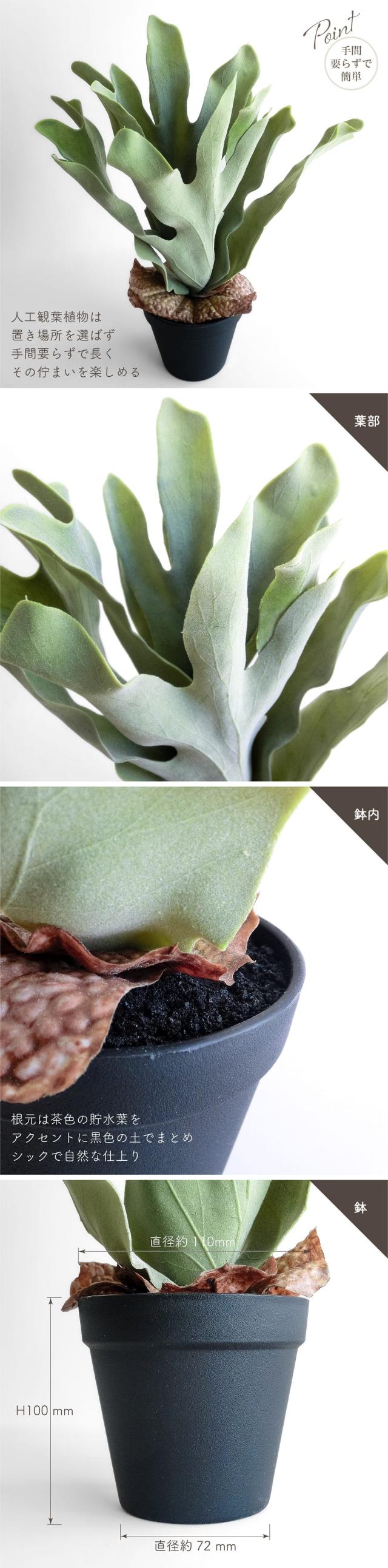 人工観葉植物 アーティフィシャルグリーン ビカクシダ ポット 全高約35cm 黒プラ鉢 コウモリラン 造花 フェイクグリーン インテリアグリーン 鉢物 観葉植物 贈り物 ギフト おしゃれ インテリア