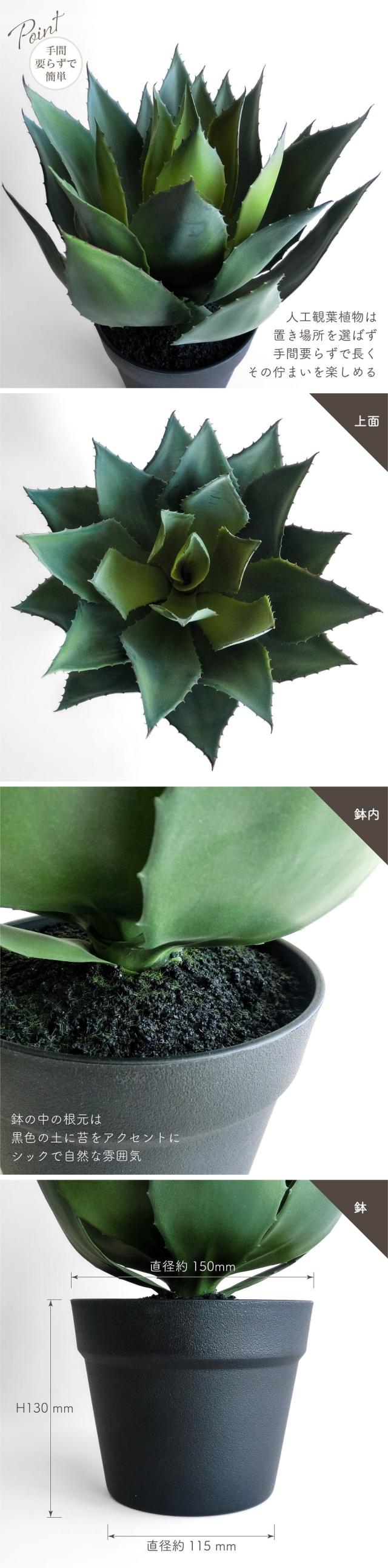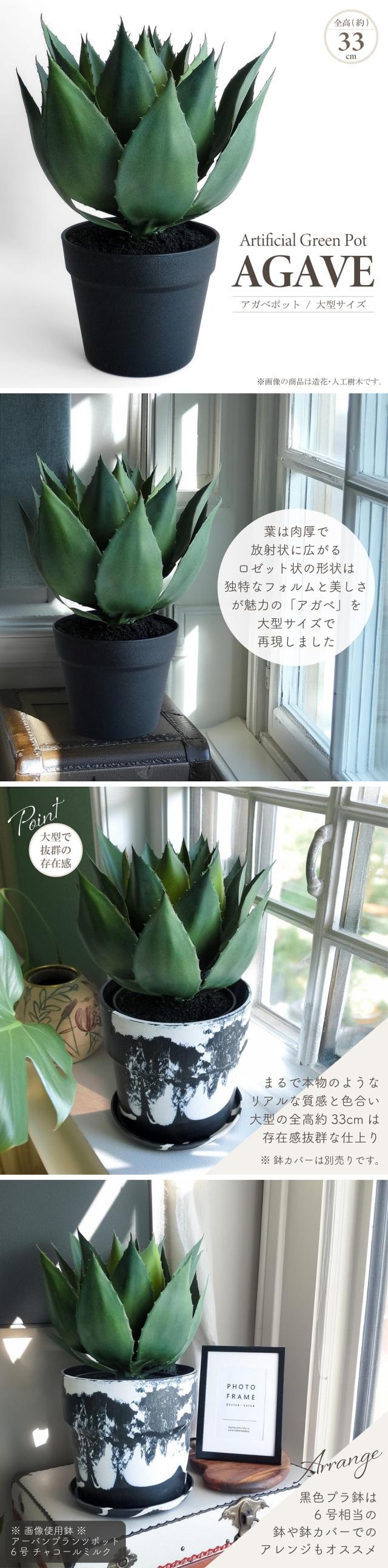 人工観葉植物 アーティフィシャルグリーン アガベ 大型タイプ 全高約33cm 黒プラ鉢 アガペ 多肉植物 造花 フェイクグリーン インテリアグリーン 鉢物 観葉植物 贈り物 ギフト おしゃれ インテリア
