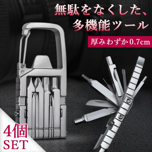 4個セット 薄型 多機能ツール ドライバー マルチツール 12in1 工具 ドライバーセット ガジェット 携帯 カラビナ キーホルダー ストラップ ミニ 小型 コンパクト ナイフ 栓抜き 折りたたみ プラス マイナス 六角 ドライバー 持ち運び 便利グッズ アウトドア 小さい