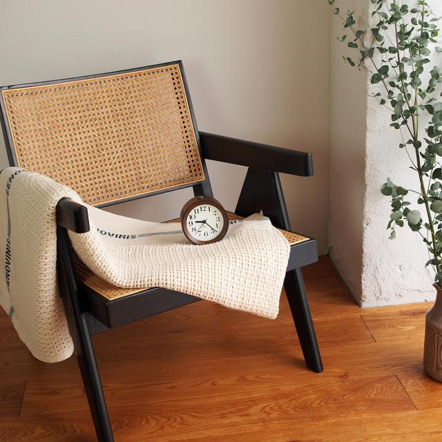 RIKI ALARM CLOCKは、大きめの12個の数字を使用した視認性の高い文字盤とシンプルなフォルムが美しく融合されています。木製の丸みを帯びた枠体は、軽やかで、柔らかな印象を与えます。木目の美しさが特徴的です。
