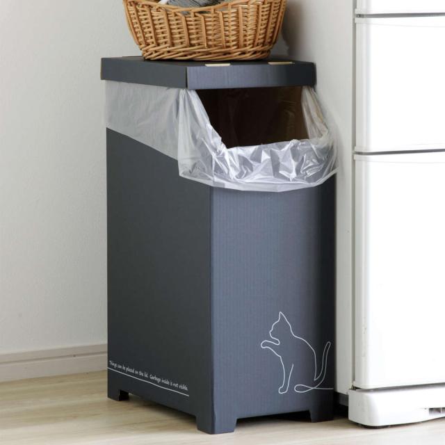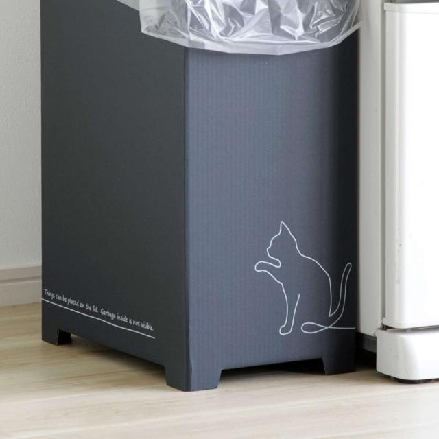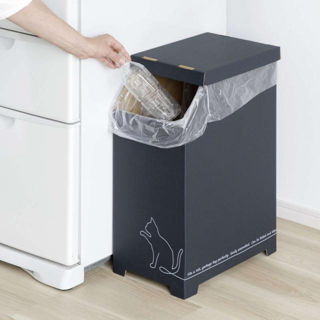 ゴミ箱 物が置ける ダンボールゴミ箱 45L クロネコ 日本製 ( ごみ箱 45リットル 段ボール スリム 分別 簡易 アウトドア 災害時 屋内 屋外 コンパクト 持ち運び 軽量 シンプル インテリア )