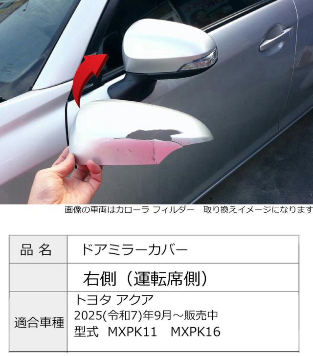 ドアミラーカバー右 トヨタ アクア MXPK11 MXPK16 右側(運転席側)カラーをお選びください 傷・割れ・はげた時にDIYで交換にチャレンジ TASR2
