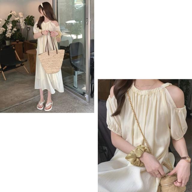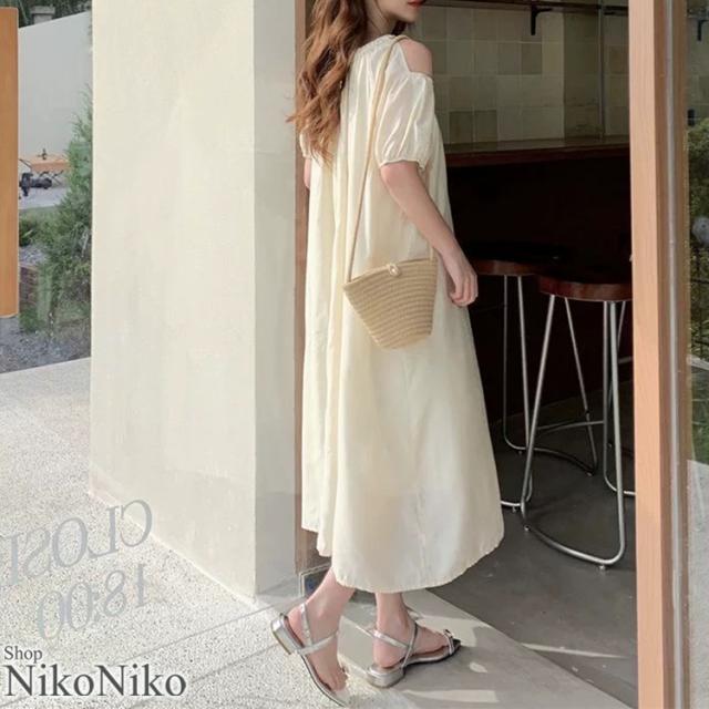 全品送料無料一部除く オープンショルダー パフスリーブ ロングワンピース ma 【即納】ワンピース ワンピ ドレス 高身長 低身長 体型カバー ゆったり 妊婦 マタニティ リゾートワンピース 夏ワンピース 肩開き カットアウト レディース 韓国 流行り トレンド かわいい