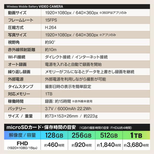 ・仕様及びデザイン(製品ケース、ロゴ、付属品を含む)は予告なく変更される場合がございます。予めご了承下さい。・本製品のバッテリーは、カメラ機能用と給電用の共有となっております。