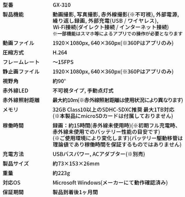 ■ GX-310 | フルHD録画対応モバイルバッテリー型カメラ【小型カメラ】【オンスクエア】【Gexa】【ジイエクサ】