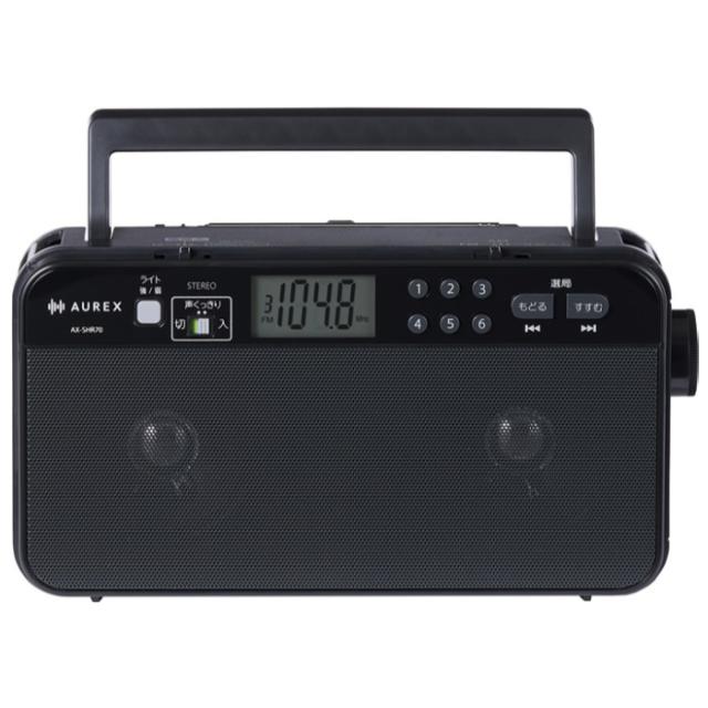 東芝 AM FM ホームラジオ AUREX LEDライト付き デカ文字 バックライト液晶 AX-SHR70-K ブラック FM・AM 肩ベルト付 防災 2WAY電源 乾電池 USB電源