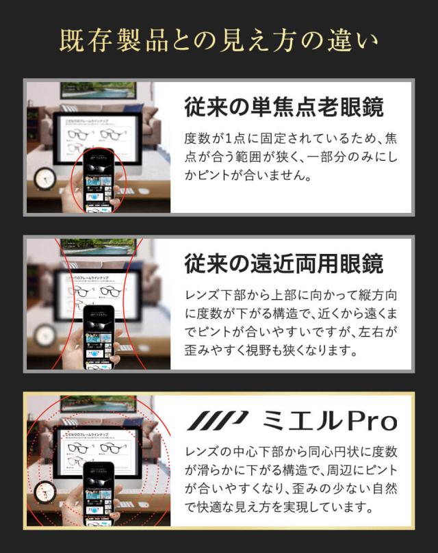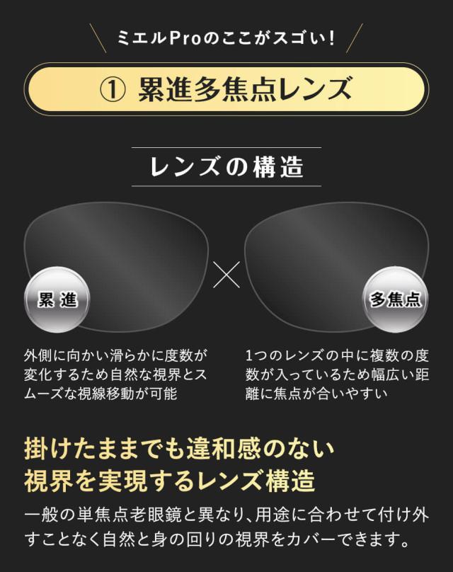 送料無料 ミエルPro 累進多焦点レンズ 老眼鏡 UV・ブルーライトカット 全2種 ボストン ウェリントン リーディンググラス