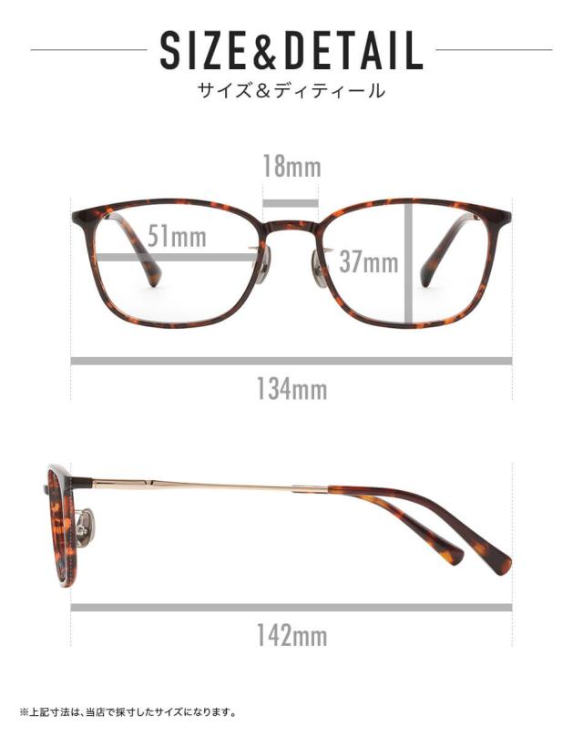 UW001-TO:(レンズ幅)51mm、(ブリッジ幅)18mm、(テンプル長)142mm