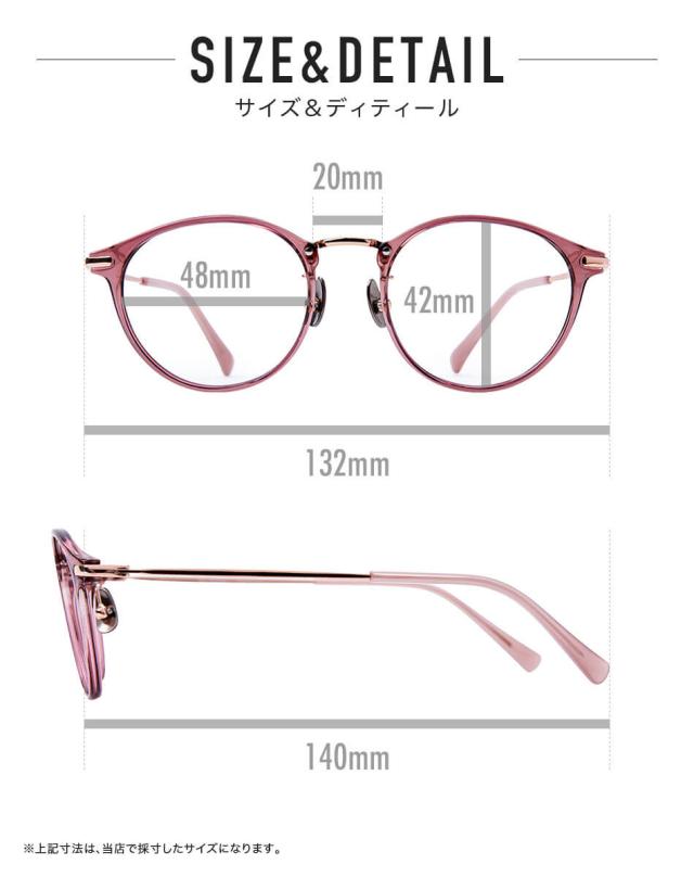 UB003-CPK:(レンズ幅)48mm、(ブリッジ幅)20mm、(テンプル長)140mm