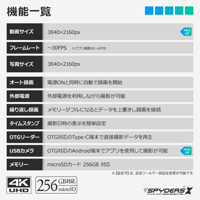 | 【製品機能】 | ・動画撮影 ・写真撮影 ・オート録画 ・外部電源 ・繰り返し録画 ・OTGリーダー ・OTGカメラ ・WEBカメラ |
