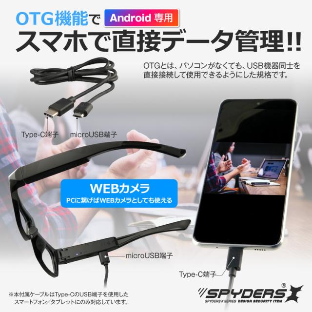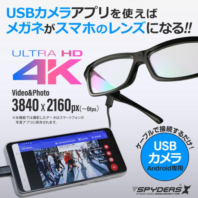 スパイダーズX メガネ型カメラ E-214 4K Android専用 OTGカメラ&リーダー ハンズフリー
