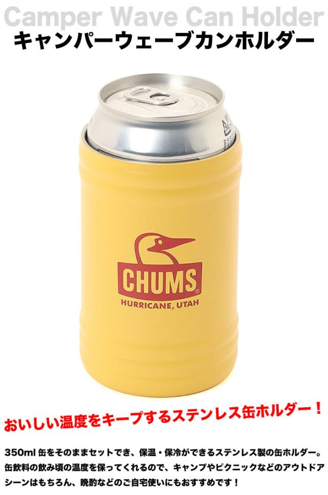 CHUMS チャムス キャンパーウェーブカンホルダー ステンレス缶ホルダー 350ml缶用 保温 保冷 キャンプ アウトドア レジャー BBQ バーベキュー オフィス 自宅 ルームグッズ 真空断熱構造 CH62-2249