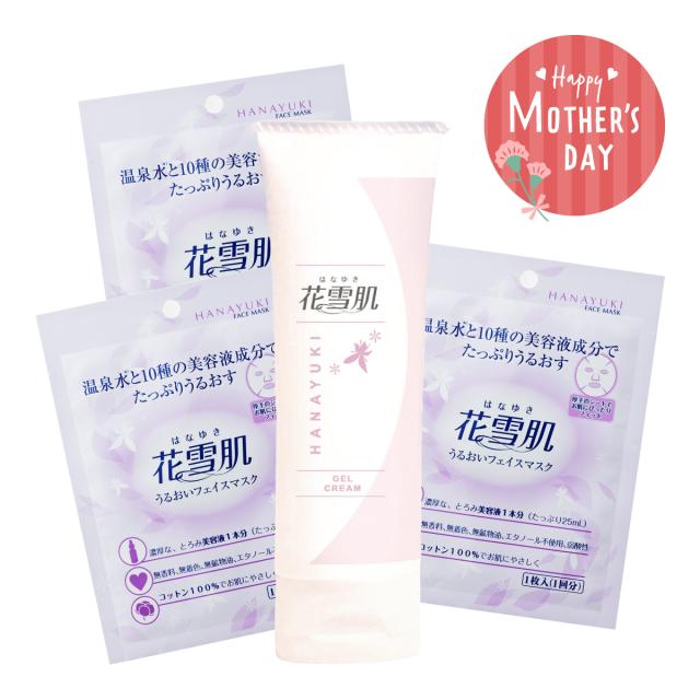 母の日 ギフト オールインワンゲル セラミド コラーゲン プラセンタ はなゆき 花雪肌 ジェルクリーム チューブタイプ 80g 1個 うるおいフェイスマスク3枚セット 医薬部外品 正規販売店 母の日ラッピング無料