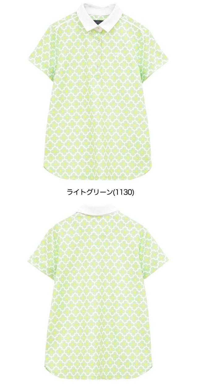 大きなカノコ目で表面感のあるキャロウェイ定番的素材のシャツ。水玉を組み合わせたレトロな雰囲気のオリジナル花柄を全面にプリントしました。襟は白無地素材ですっきりした印象に仕上げています。同柄のスカートとセットアップコーディネートもおすすめです。品番:C26134215