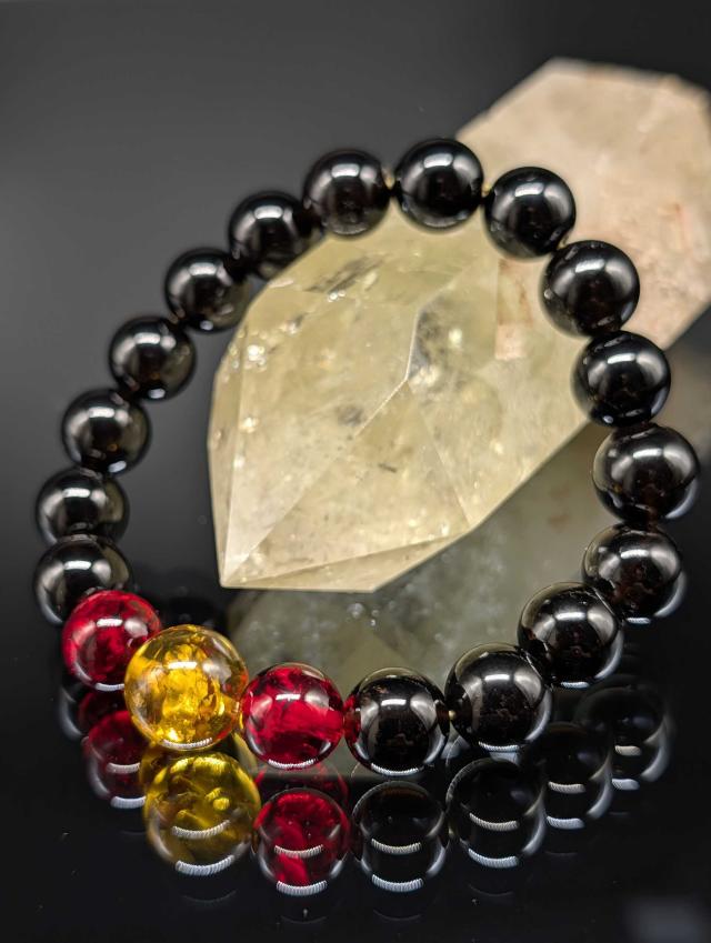 パワーストーン レッドアンバー ブラウンアンバー モリオン 天然琥珀 黒水晶 10mm 親玉11mm ブレスレット 金運上昇 健康 厄除け メンズ レディース