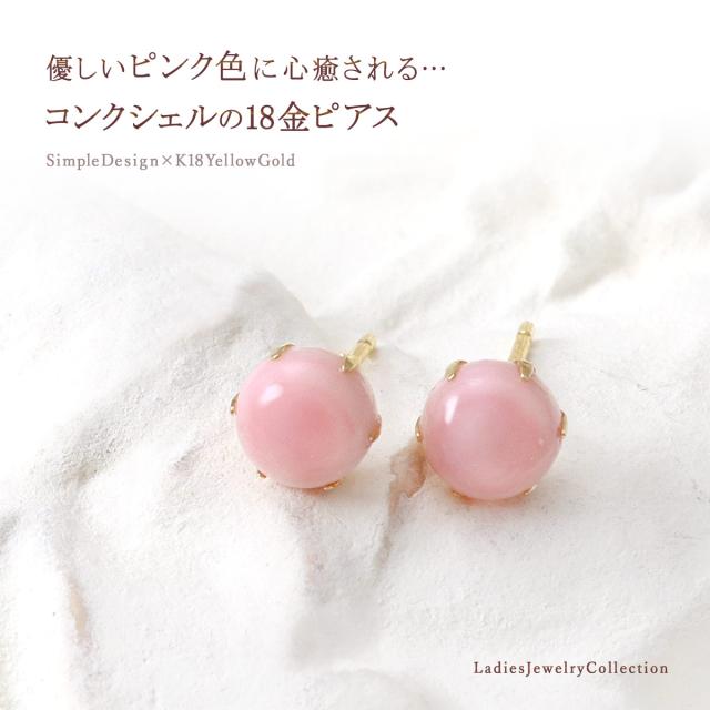 ピアス 18K 18金 K18 コンクシェル レディース イエローゴールド 可愛い おしゃれ プレゼント 記念日 贈り物 誕生日 シンプル 一粒 両耳分 スタッド 控えめ 普段使い 会社 女性 妻 奥さん 彼女 娘 コンク貝 シェル 貝殻 K18YG ピンク 桜色 ピンク色 本物 母の日 ギフト 2026