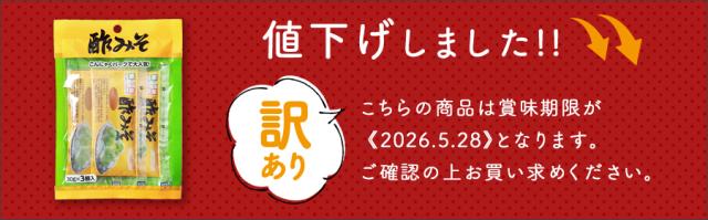 | 名称 |酢みそ 原材料名 |砂糖混合異性化液糖(国内製造)、砂糖、みそ、醸造酢、米発酵調味料、食塩/調味料(アミノ酸等)、増粘剤(キサンタン)、ターメリック色素、(一部に大豆・りんごを含む) 栄養成分 |【30gあたり】エネルギー:68Kcal、たんぱく質:1.4g、脂質:0.5g、炭水化物:14.8g(糖質:14.3g、食物繊維:0.5g)、食塩相当量:0.5g、食塩相当量:1.5g 内容量 |3個入(1個30g)×7袋 賞味期限 |2026年5月28日 保存方法 |直射日光、高温の場所を避けて保存してください 製造者 |株式会社ヨコオデイリーフーズ |