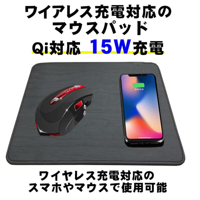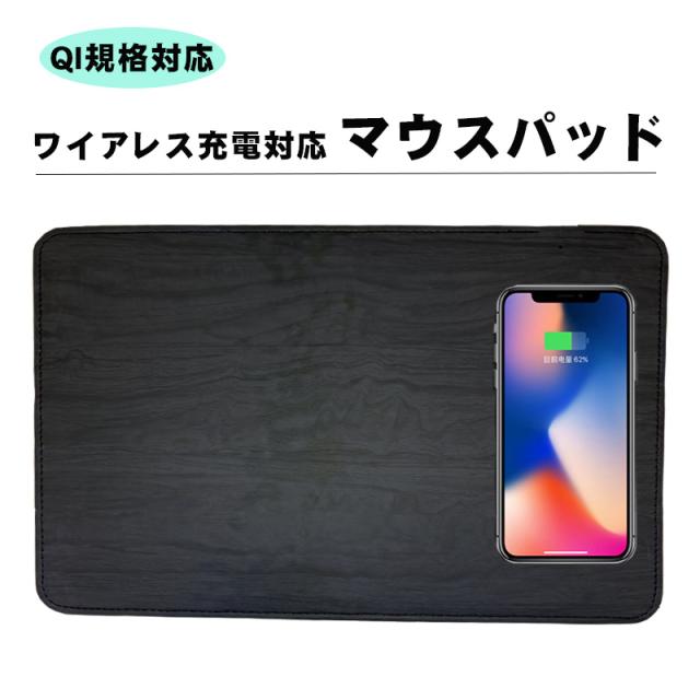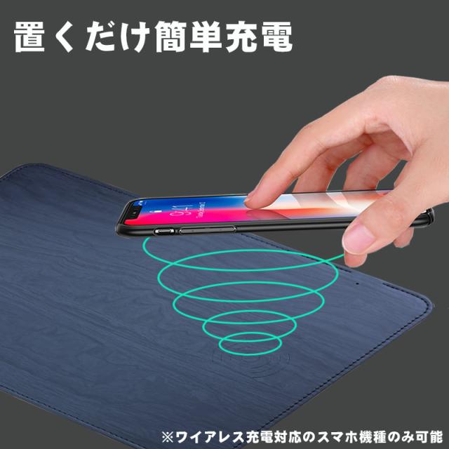 ワイヤレス充電マウスパッド Qi規格対応 置くだけスマホ無線充電 スマートフォンGalaxy iPhone Android アイフォン アンドロイド ソフトレザー ブラック