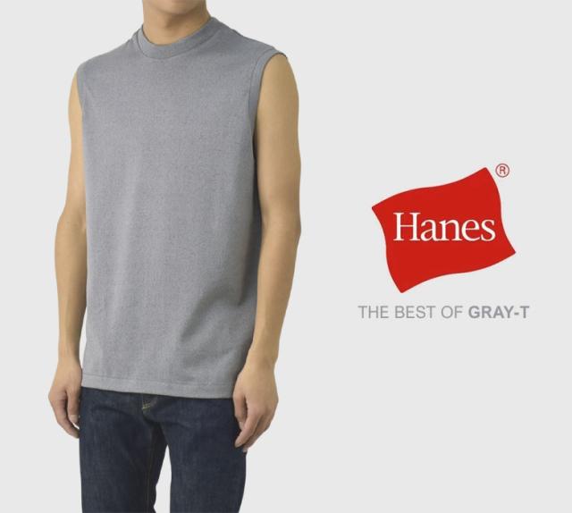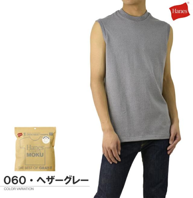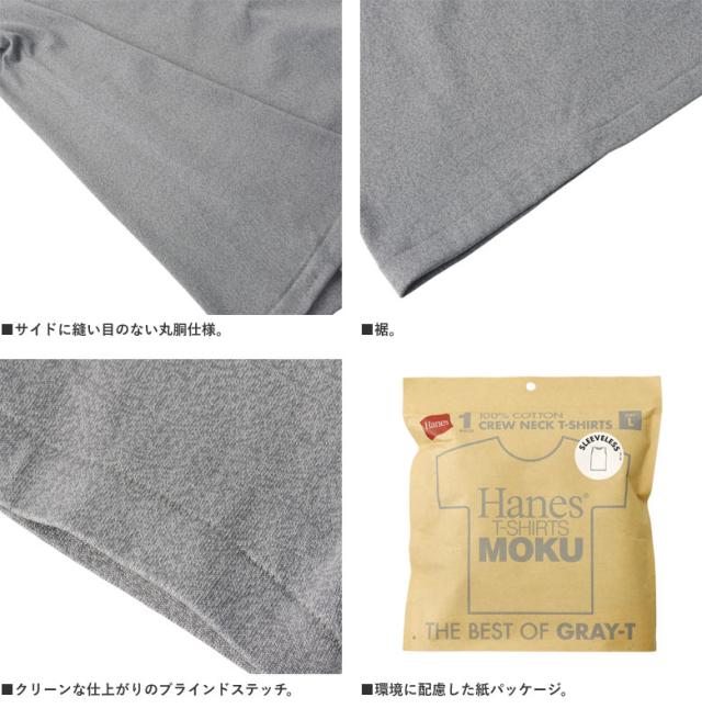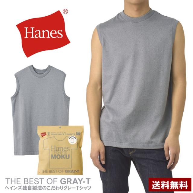 ノースリーブ スリーブレス メンズ クルーネック 袖なし Tシャツ Hanes ヘインズ MOKU グレー 7オンス コットン100% HM3-D203 正規品【D2B】【パケ1】【A】