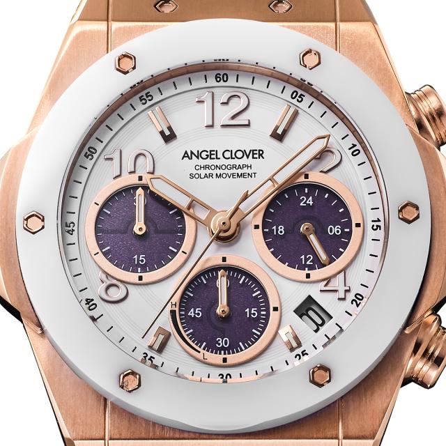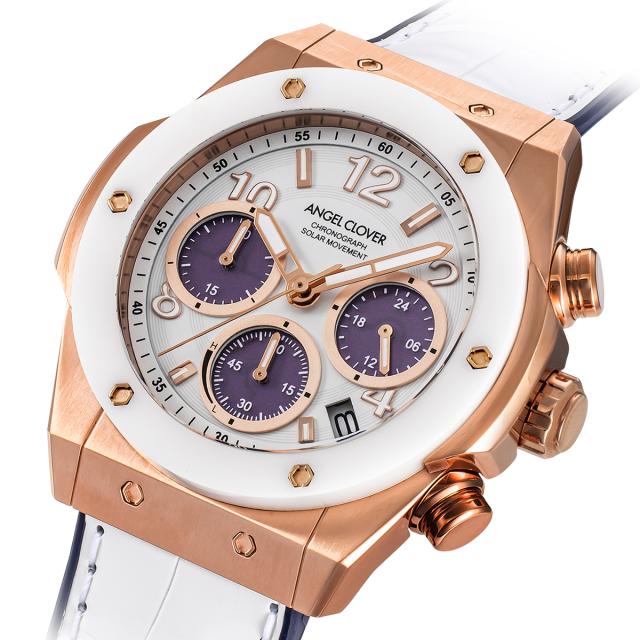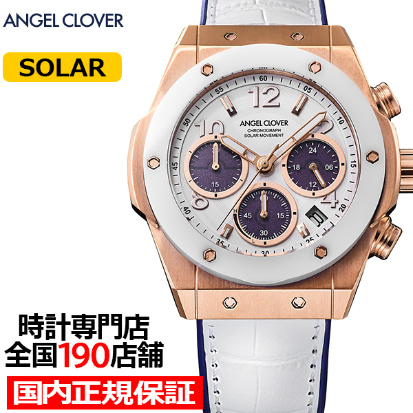 4月17日発売 エンジェルクローバー エクスベンチャー ソーラー セラミック ホワイト EVS45PWH-WH メンズ 腕時計 クロノグラフ 革ベルト