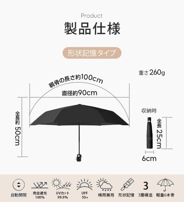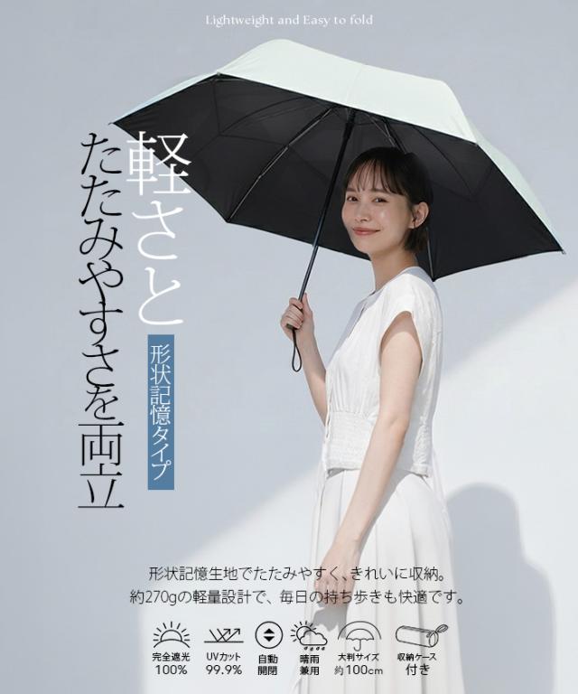 先着33名様50%OFFクーポン! 形状記憶 日傘 折りたたみ傘 自動開閉 軽量 遮光 晴雨兼用 雨傘 かさ UVカット 撥水 コンパクト 紫外線カット 大きい 日よけ レディース 上品 涼しい 春夏 晴雨兼用傘【晴雨兼用 コンパクト折りたたみ傘 自動開閉&形状記憶】