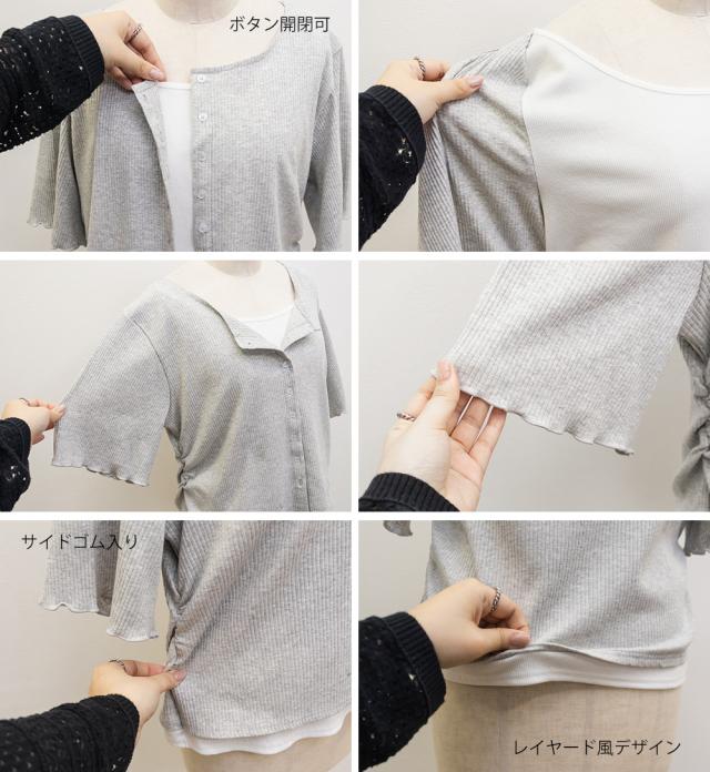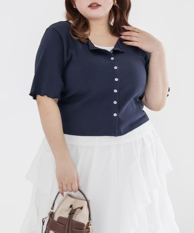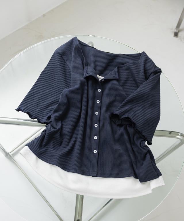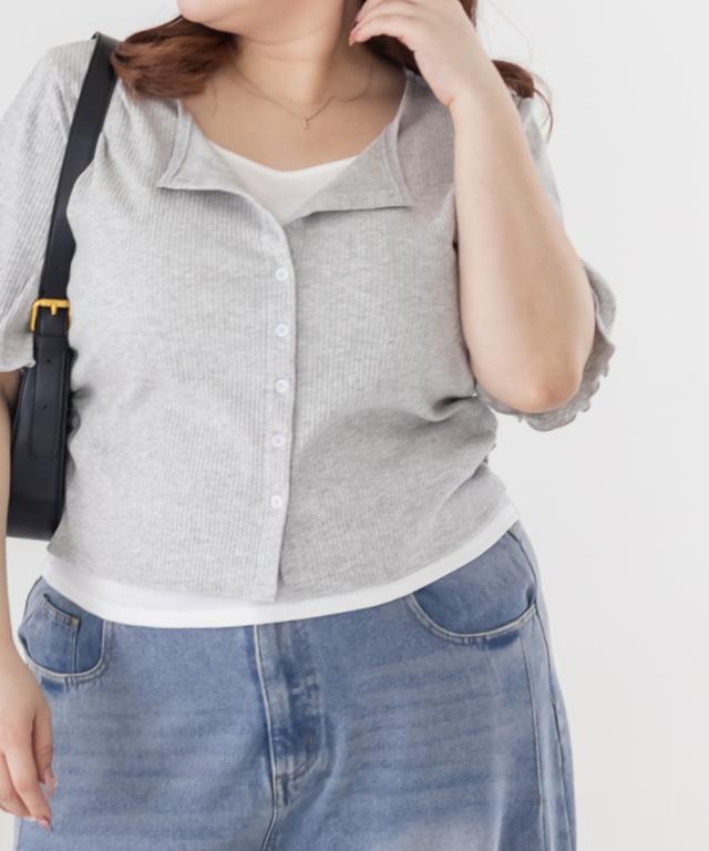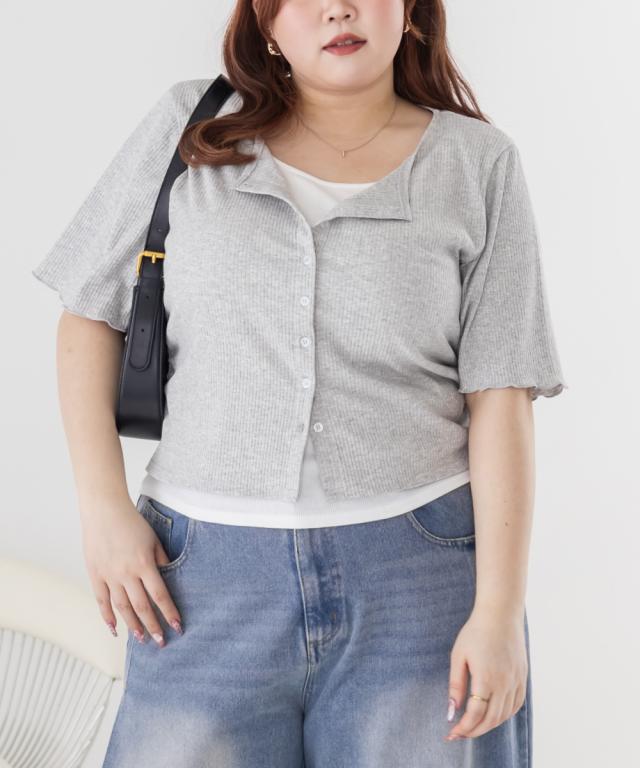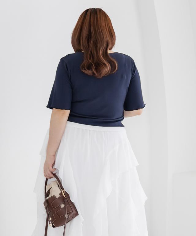 | 3Lサイズを着用してちょうどいいサイズ感でした!レイヤード風のデザインで1枚でしっかりコーデが決まるのが嬉しいです◎リブ素材で程よくフィットしつつも窮屈感はなく、着心地もとても楽でした♪すっきり見えするシルエットで、インでもアウトでもバランスよく着られるのがポイントです! |