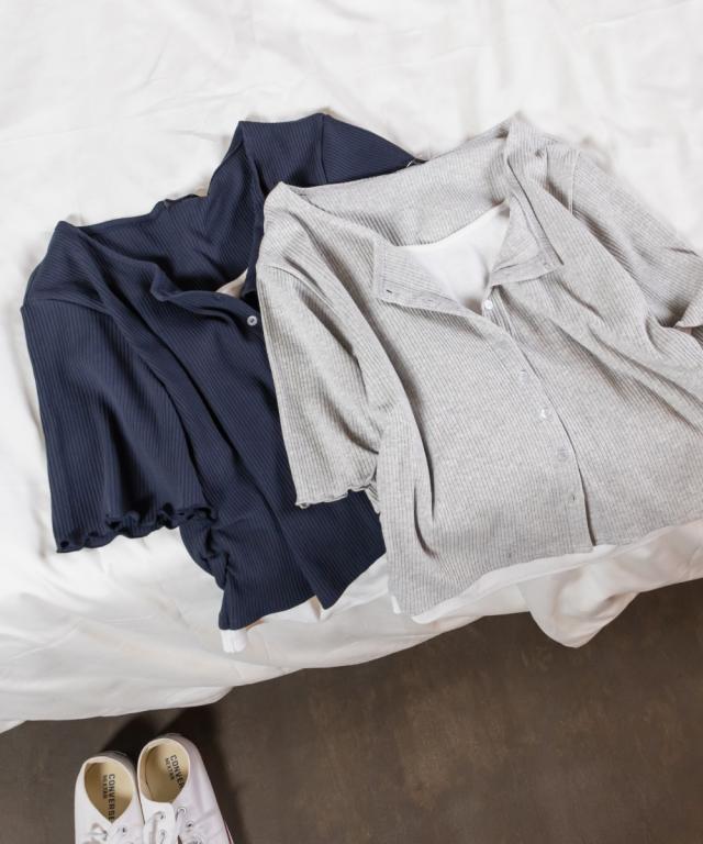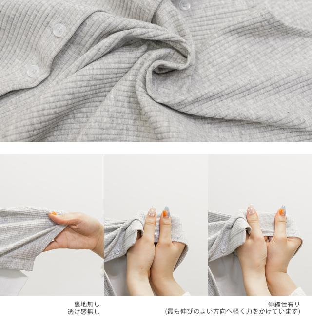 | 中側生地:細かめの程よくしっかりとした伸縮性のあるリブカットソー 外側(本体生地):程よくしっかりとした中側生地より太めピッチの伸縮性のあるリブカットソー |