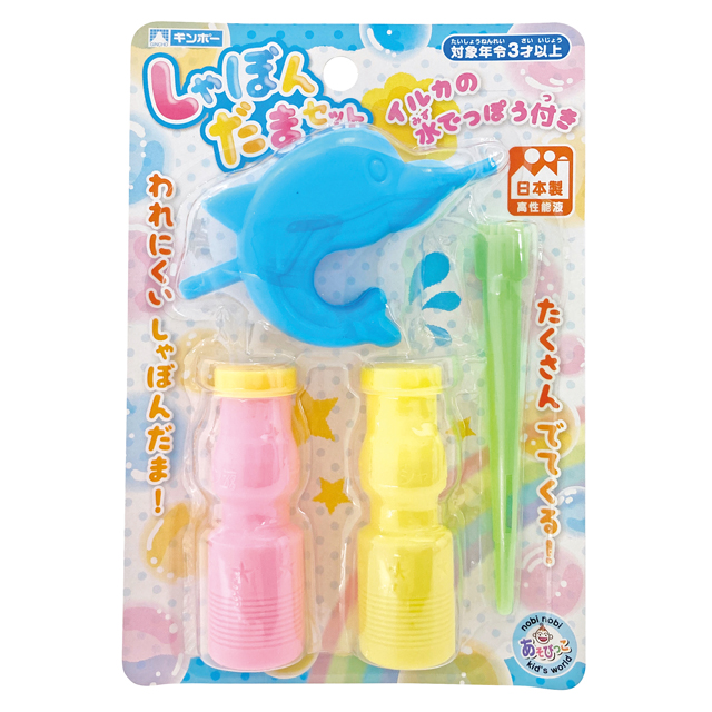 ○商品内容:しゃぼん玉液×2本,ストロー×1本、いるかの水てっぽう×1個