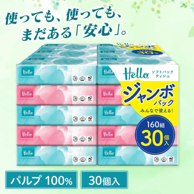ハロー ソフトパックティッシュ 160組 30個 5221 ユニバーサル・ペーパー ティッシュ ティッシュペーパー 箱なし ソフトパックティッシュ ハローティッシュ ソフトパック ティッシュ大容量 ソフトティッシュ まとめ買い
