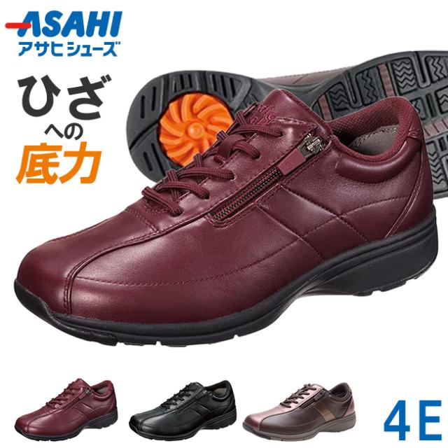 アサヒ メディカルウォークLF スニーカー レディース 滑らない 滑りにくい 歩きやすい 疲れない 履きやすい 防滑 軽量 スクリュー ローカット サイドジップ 本革 4E 幅広 おしゃれ 女性用 通勤 運動靴 ウォーキングシューズ 靴