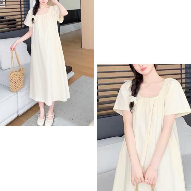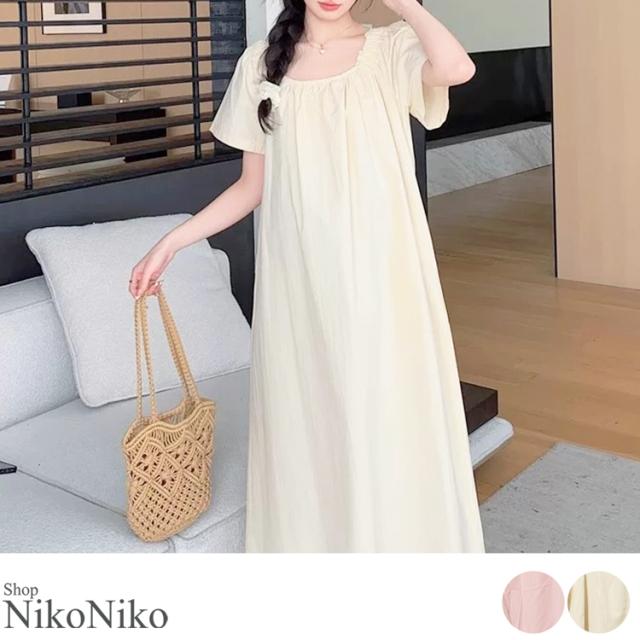 全品送料無料一部除く ギャザースクエアネック 半袖ミディ丈ワンピース ma 【即納】ワンピース ワンピ ドレス フレア袖 フレアワンピース Aライン 高身長 ゆったり 妊婦 マタニティ リゾートワンピース 夏ワンピース 無地 レディース 韓国 流行り トレンド かわいい
