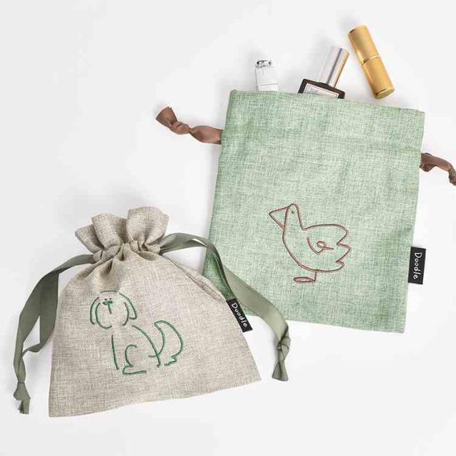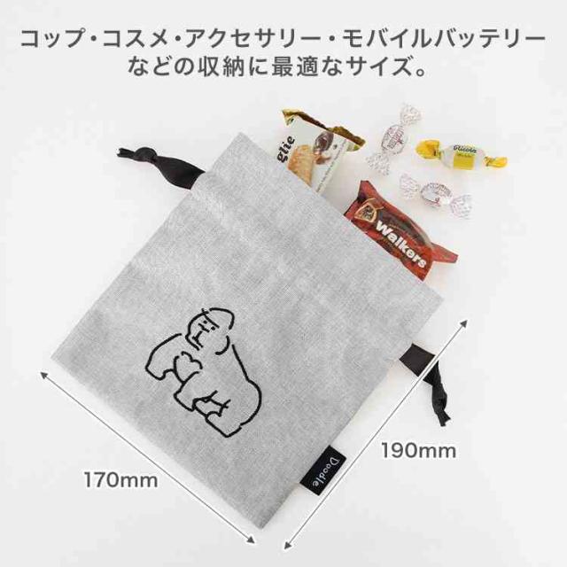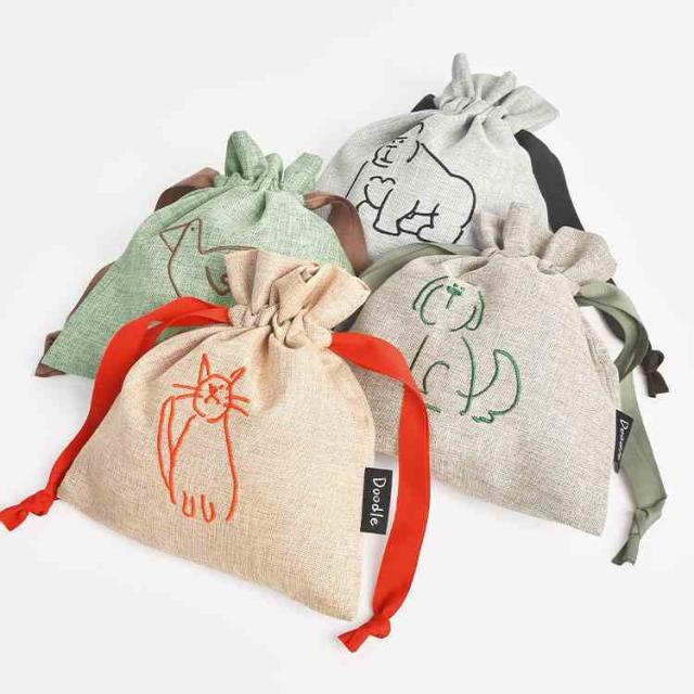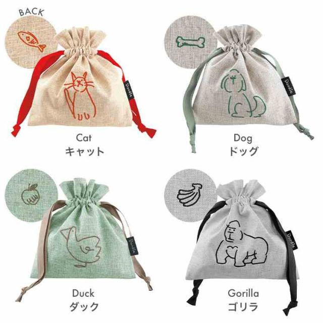 巾着ポーチ Doodle ドゥードゥル 巾着袋 小物入れ ミニポーチ 小さめ メイクポーチ アクセサリー 薬入れ バッグインポーチ コップ袋 きんちゃく かわいい おしゃれ 動物 アニマル 猫 犬 ゴリラ アヒル 刺繍 大人 女性 子供 女の子 ギフト 誕生日 プレゼント