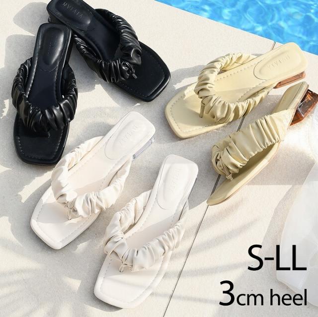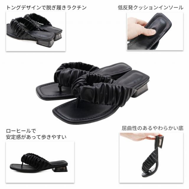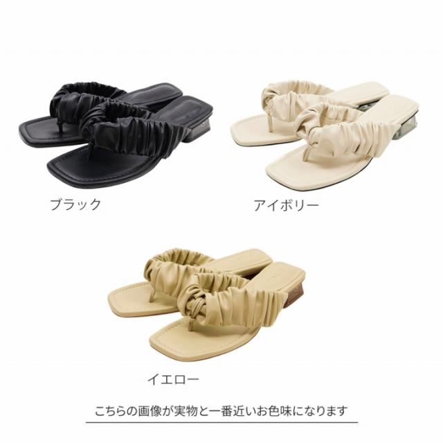 Vivian サンダル レディース トング ギャザー シャーリング クリアヒール ローヒール ペタンコ ペタンコ フラット ブラック 黒 アイボリー 白 イエロー 旅行 テーマパーク 遊園地 ライブ レジャー 痛くない 歩きやすい 疲れない キレイめ 22.5cm 23cm 23.5cm 24cm 24.5cm S M L LL 大きいサイズ 小さいサイズ 春 夏 通勤 オフィス 10代 20代 30代 40代 50代 60代 Minkyme Minky me