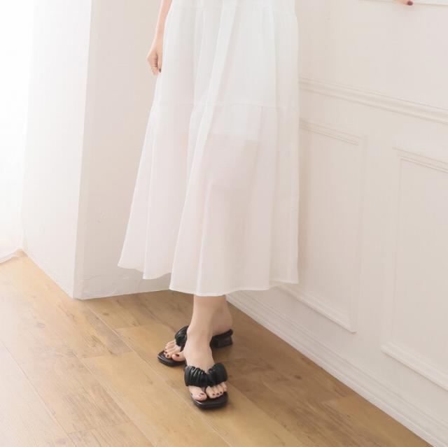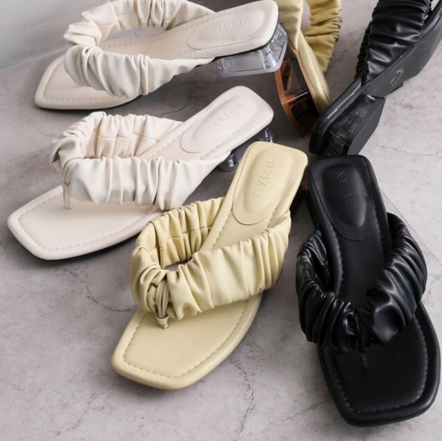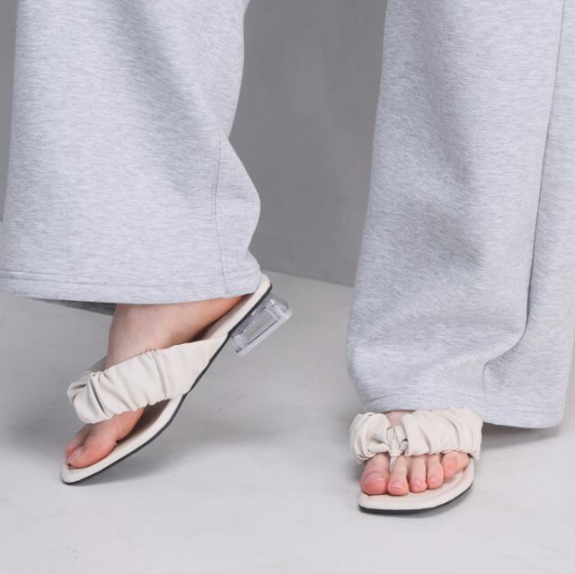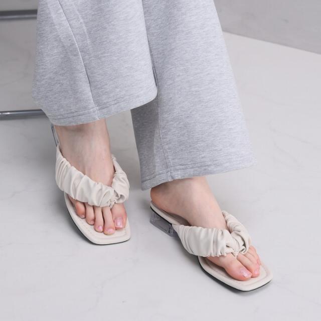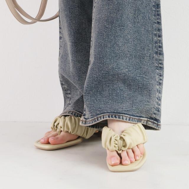 ・くしゅくしゅのシャーリングデザインが目を引くトングサンダル!