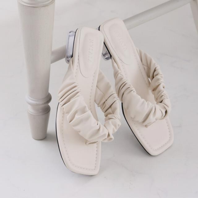 くしゅくしゅのシャーリングデザインが目を引くトングサンダル!