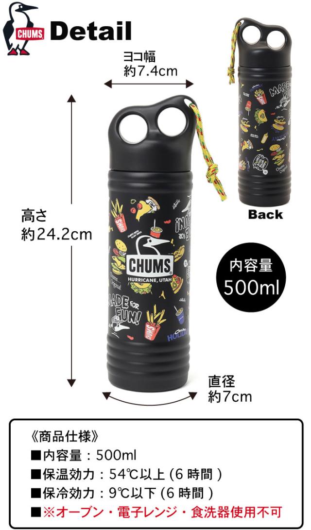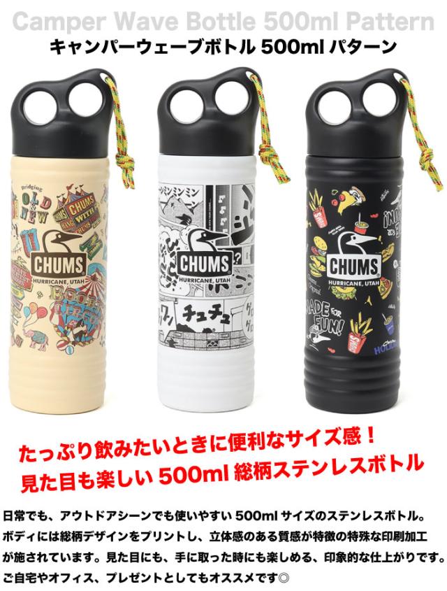 CHUMS チャムス キャンパーウェーブボトル500mlパターン 保温 保冷 水筒 タンブラー マグボトル アウトドア キャンプ スポーツ 遠足 釣り 登山 オフィス 日常 総柄 CH62-2274