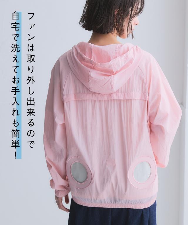 暑い夏でもおしゃれに涼しく!夏にぴったりファン付きパーカー ■デザイン:取り外し可能なファンが付いた空調ウェア! 暑い夏でもおしゃれに涼しくなれる商品です。 作業着のようになりがちな空調服を色味やデザインでタウンユースでも使えるように作りました。 ファンは風量を3段階で調節できます。 またお手持ちのバッテリーにつないで使用できます。 ポケットはファスナー付き。 フードはひも付きで調節可能。 裾と袖にはゴムが入っているのでプッシュアップなどの調整も可能。 ■素材:裏地がなく薄めのナイロン素材なのでさっと羽織るのにちょうどよい。 また軽くてコンパクトになるので持ち運びにも便利。 ■おすすめのスタイリング:丈が長すぎないのでロングスカートやワイドパンツとも合わせやすい! もちろんいつものスリム系ボトムやデニムでもかわいくなります。 ユニセックスで着用可能です。 ■使用上のご注意:・直射日光の強いところや高温、多湿、水のかかる場所、炎天下の車内、火気の近くなどに保管、放置をしないでください。 火災、やけど、ケガなどの原因になります。また製品寿命を低下させる原因になります。 ・使用中はファンの回転部に人体や物を接触させないでくださ