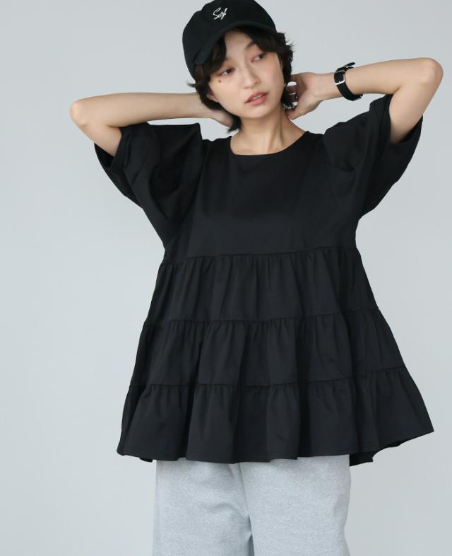 [新作限定P10%×送料無料]素早く乾いてさらっと快適!DRYタッチティアードチュニック【メール便不可】