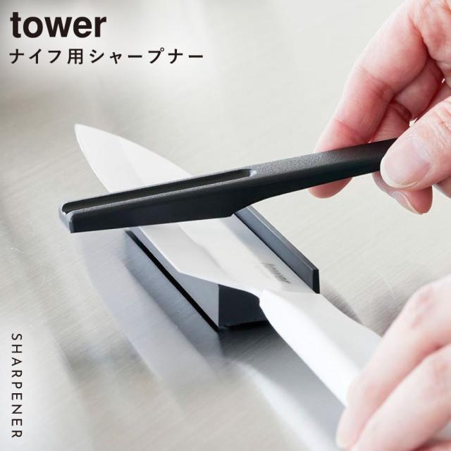 セラミックナイフ用シャープナー タワー 山崎実業 tower 包丁研ぎ セラミック 日本製 包丁 シャープナー おしゃれ モノトーン ブラック 10364