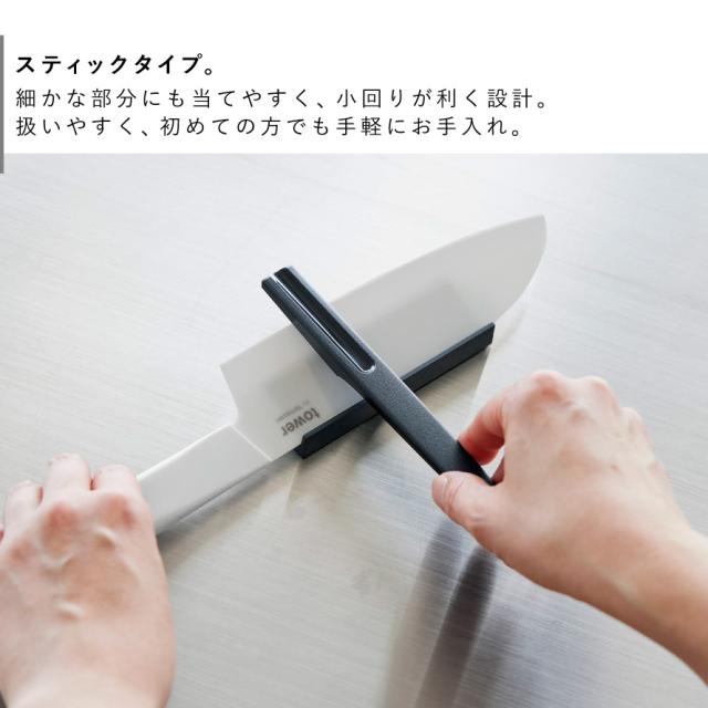 スティックタイプなので細かな部分にも当てやすく、小回りが利く設計。従来の砥石よりも扱いやすく、初めての方でも手軽にお手入れができます。