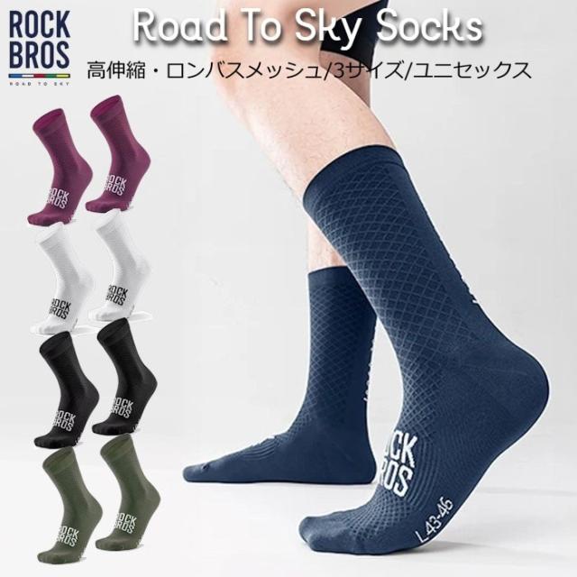 サイクルソックス RockBros 「ロード・トゥ・スカイ ソックス」ロードバイク サイクリングソックス スポーツソックス 伸縮 吸湿速乾 MTB トレラン ヨガ ウォーキング ジョギング 靴下 シンプル おしゃれ プレゼント