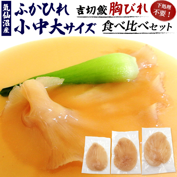 気仙沼産 吉切鮫ふかひれ胸びれ 小中大サイズ食べ比べセット